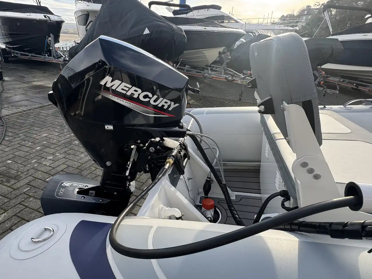 Engine: Mercury 20 HP with electric start and power tilt