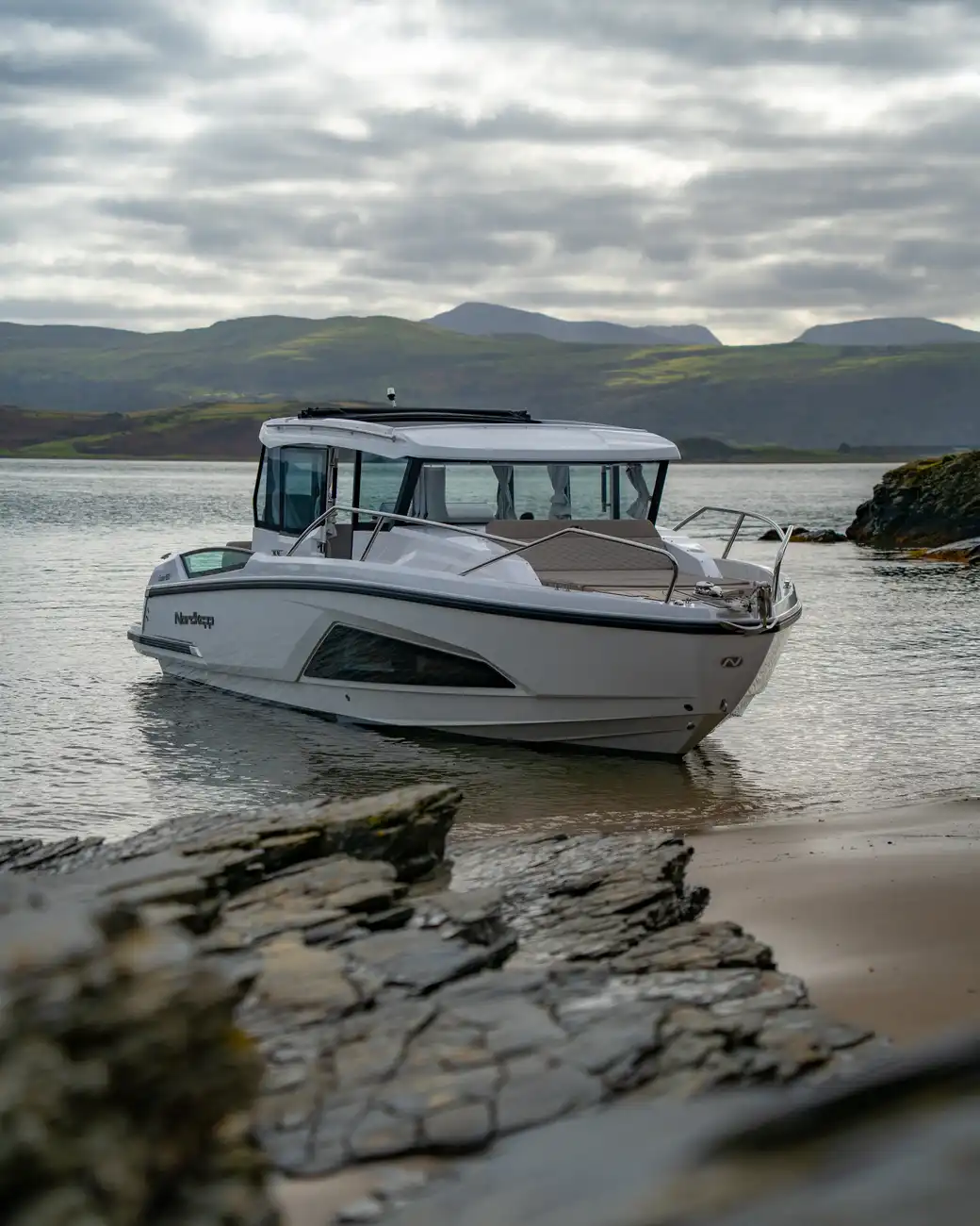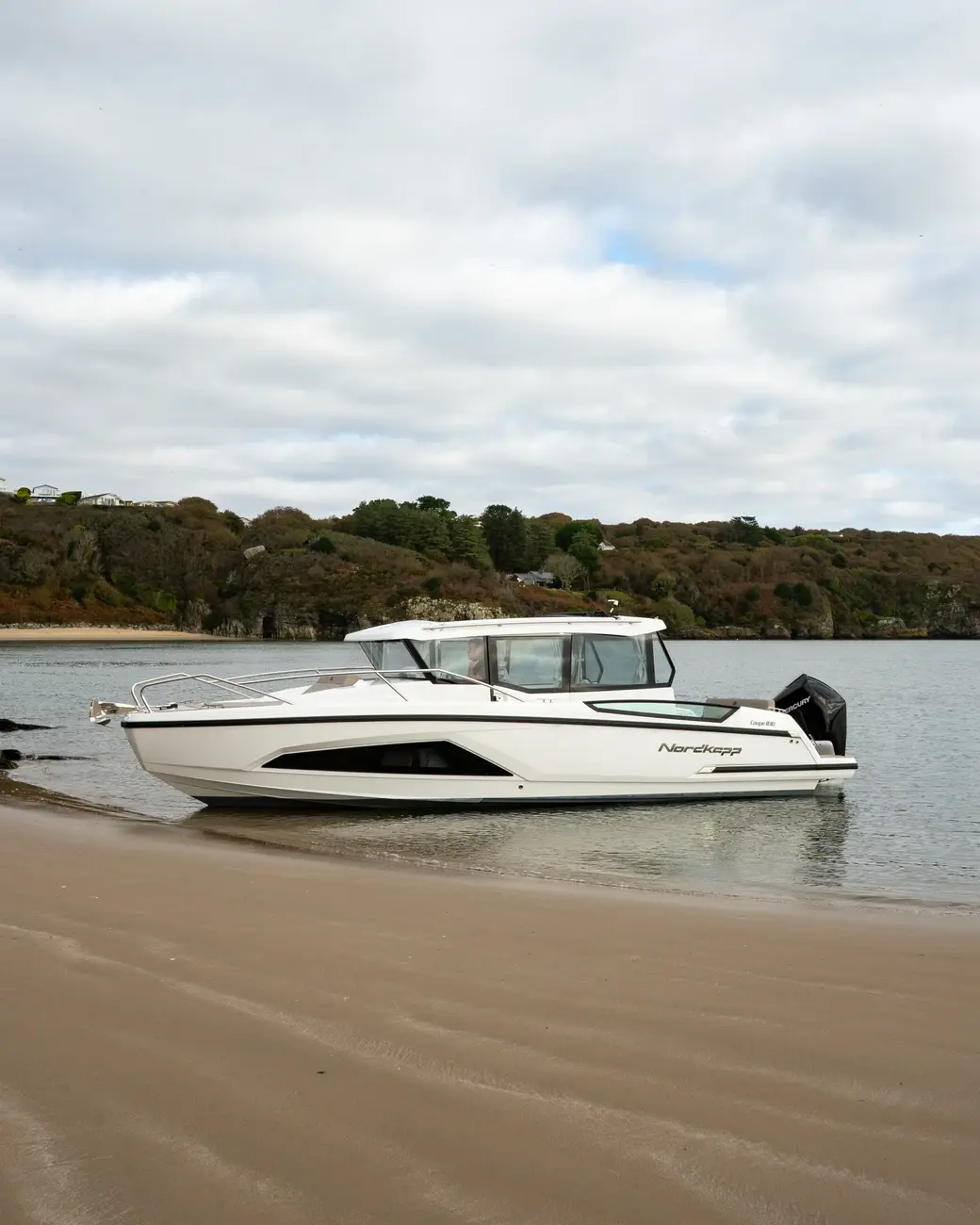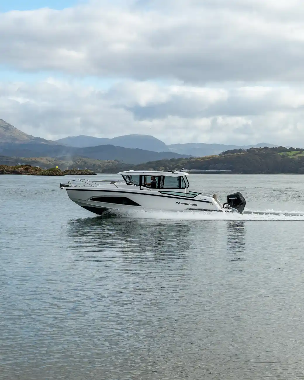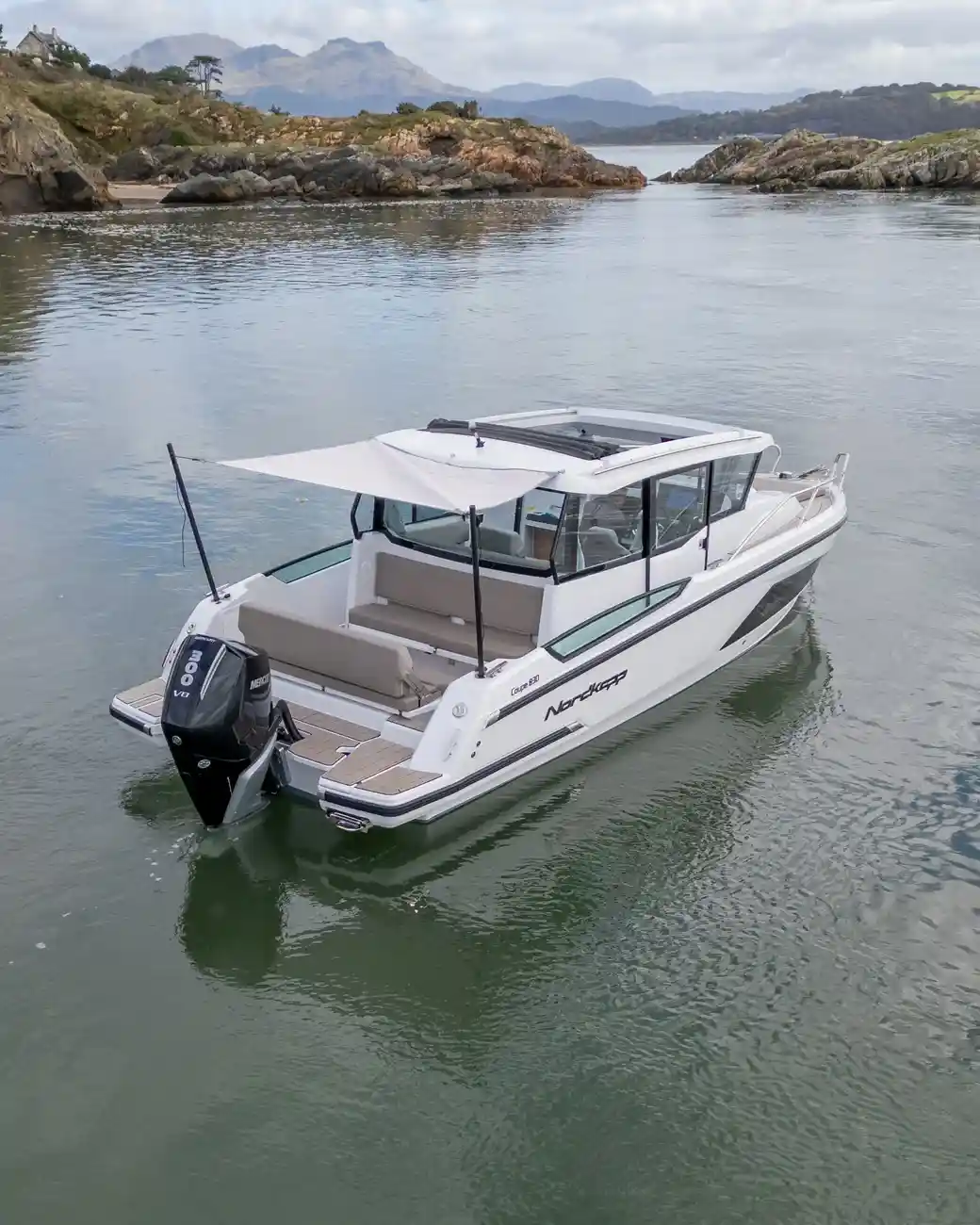 The Nordkapp Coupe 830 is a sleek 8.3-meter Scandinavian cruiser that blends modern design with all-weather functionality. Powered by a Mercury V8 300HP outboard it delivers a smooth, stable ride with excellent handling, even in rough conditions.